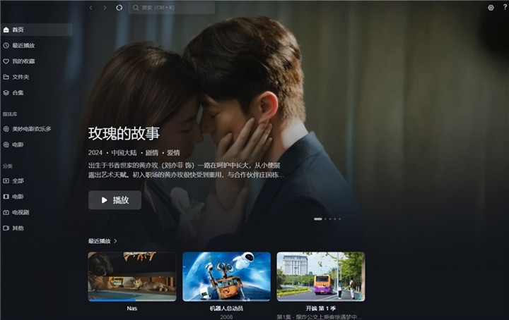 影视中心更是让家庭时光多了仪式感。老公平时爱存经典电影和纪录片,之前在电脑上看总被弹窗广告打扰。现在把80多G的蓝光片源传到NAS,它会自动匹配海报、评分和演员信息,生成整齐的海报墙,体验比视频网站会员还好。而且进度还能多端接力,手机上看了一半,电视上能无缝续播,浪漫又惬意。