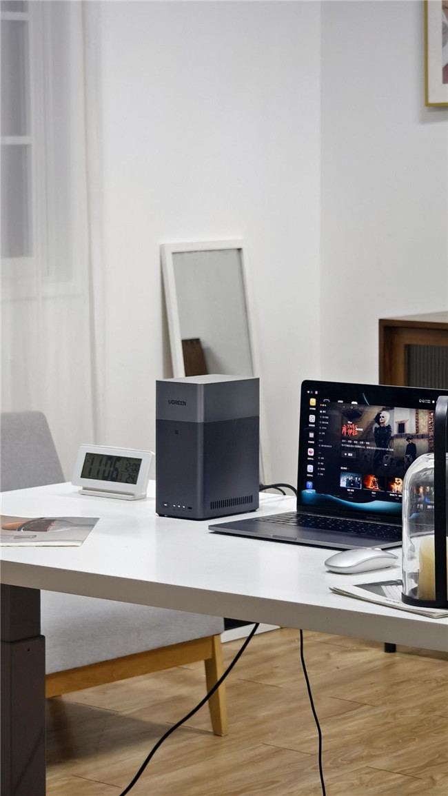 最后想说下,安全性是我们最踏实的点。绿联DH2300有双安全认证,数据传输加密,比存在云盘里更放心。而且机身侧面有散热出风口,运行时几乎无声,24小时开机也不耗电,不用担心噪音和能耗问题。